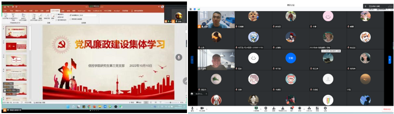 研究生第三党支部于2022年10月10日召开“廉政教育”支部大会,会议由研究生第三党支部书记李朝主持。