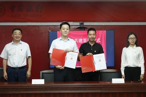 本科生第四党支部赴中国银行长安区支行同中共中国银行股份有限公司西安长安区支行委员会机关第二党支部开展党建结对共建签约仪式,中国银行西安长安区支行党总支委员、副行长吕瑾平,机关第二党支部书记、支行公司金融部代主任万艺伟,中国P站