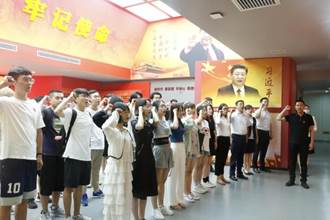签约仪式结束后,双方党支部成员一同前往航天基地红色会客厅进行参观学习,跟随讲解员,全体党员重温了从浙江嘉兴南湖上的一艘红船开始,英勇的中国共产党人掀起了一幕幕波澜壮阔的史诗篇章。最后双方全体成员共同进行了入党宣誓,重温入党誓词。