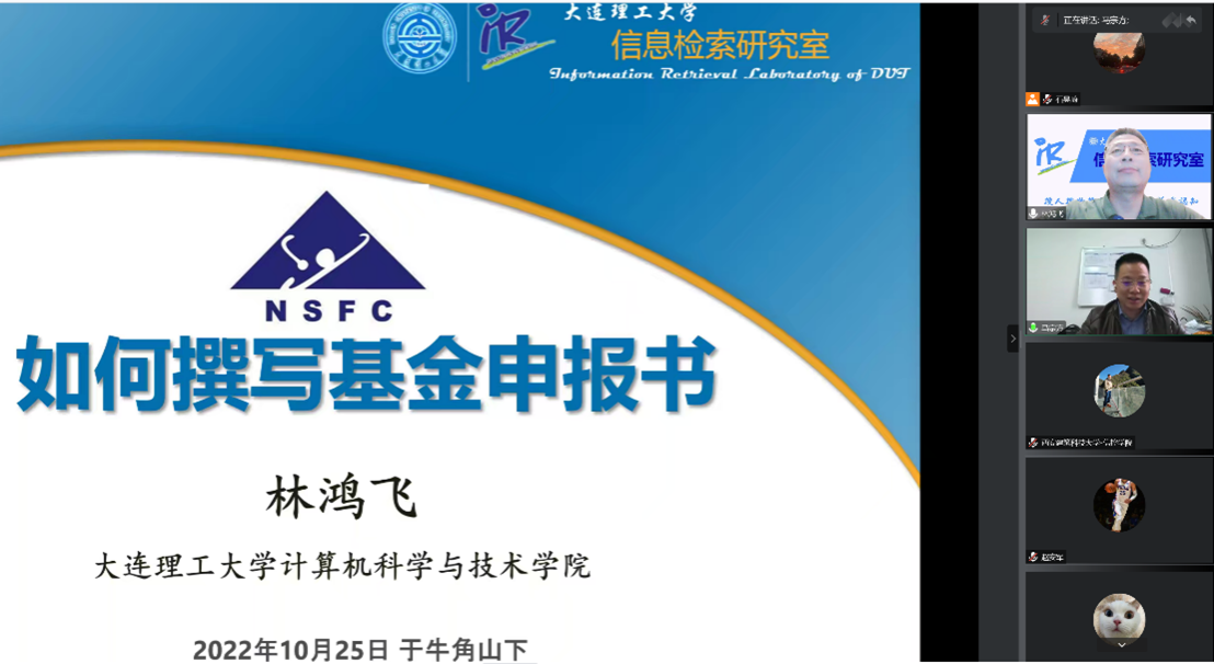 报告中,林鸿飞教授结合以往申报、评审经验和心得体会,围绕国基金申报书中的立项依据、研究内容及目标、拟解决的关键科学问题、特色与创新之处等方面进行了深入的讲解,重点阐述了申报过程中的注意事项,为参会教师尤其是青年教师的国基金申报提供了借鉴和参考。