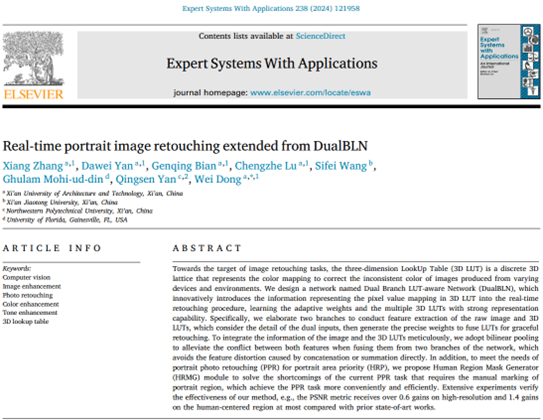 张翔副教授在中科院TOP期刊Expert Systems With Applications(影响因子8.5,中科院SCI一区)上发表题为“Real-time Portrait Image Retouching extended from DualBLN”的学术论文,张翔副教授为论文第一作者,董玮副教授为论文通讯作者,中国P站