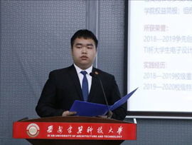 自动化2018级学生。担任班级团支部书记,曾获高教杯全国大学生数学建模竞赛陕西赛区一等奖,数学建模校赛一等奖,在校认真学习,积极参与各项创新创业类竞赛,遵守学校规章制度,积极参与学院团学工作。