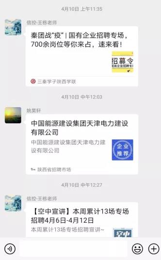 2.建立支部就业服务平台。本支部建立专门的微信群作为就业服务平台,旨在为未找到工作的党员提供就业教育、就业信息、就业渠道等。支部成员每日收集招聘信息、各项就业政策等,并转发到就业服务平台,确保就业信息流通,实现就业信息共享,为毕业党员提供良好的就业信息获取渠道。