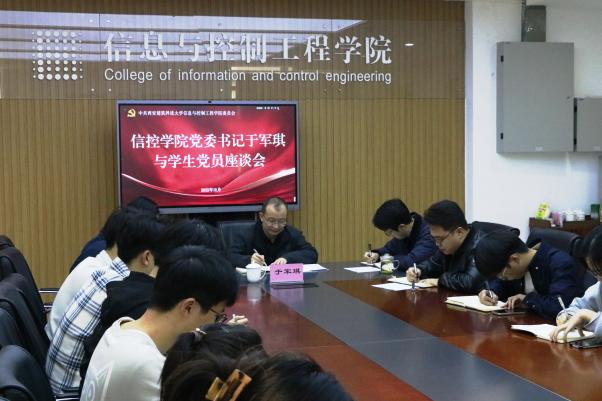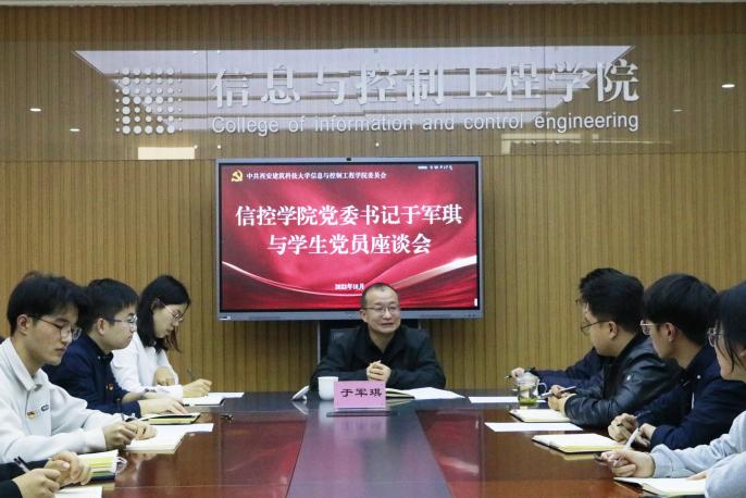 党委书记于军琪在信控楼513会议室与学生党员座谈交流,院学工办主任顾欣、院团委书记张颉以及本科生辅导员参加座谈会。