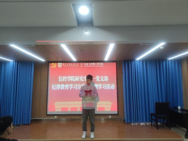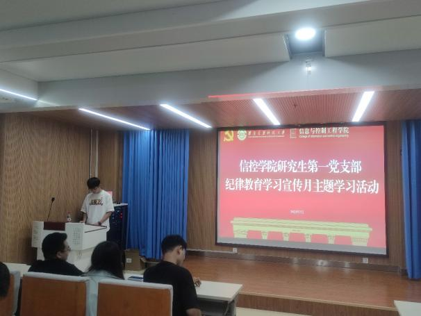 研究生第一党支部在信控楼606开展纪律教育学习宣传月主题学习活动,研究生第一党支部全体党员参加会议,会议由党支部书记王凯同志主持。