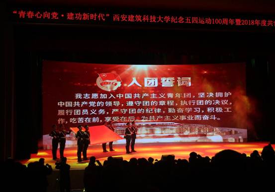 于草堂校区紫阁大礼堂隆重举行纪念五四运动100周年暨2018年共青团工作表彰典礼。校党委书记苏三庆参加典礼并致辞。校党委副书记马川鑫、相关职部门负责人、部分学院分党委(总支)副书记、副院长,各学院分团委书记、副书记,校团委全体,千余名学生代表以及受表彰的先进集体和优秀个人参加了本次大会。