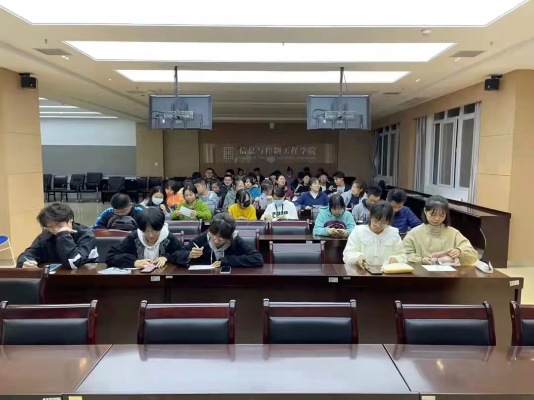 记者团在信控大楼504召工作安排会,记者团指导老师赵莎及全体成员参加。