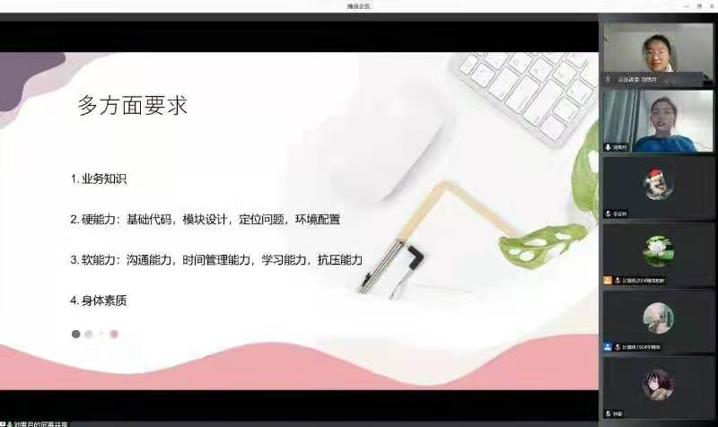 邀请2013级通信专业校友、华为技术有限公司软件开发工程师刘雪月与主要学生干部线上座谈。会议由中国P站