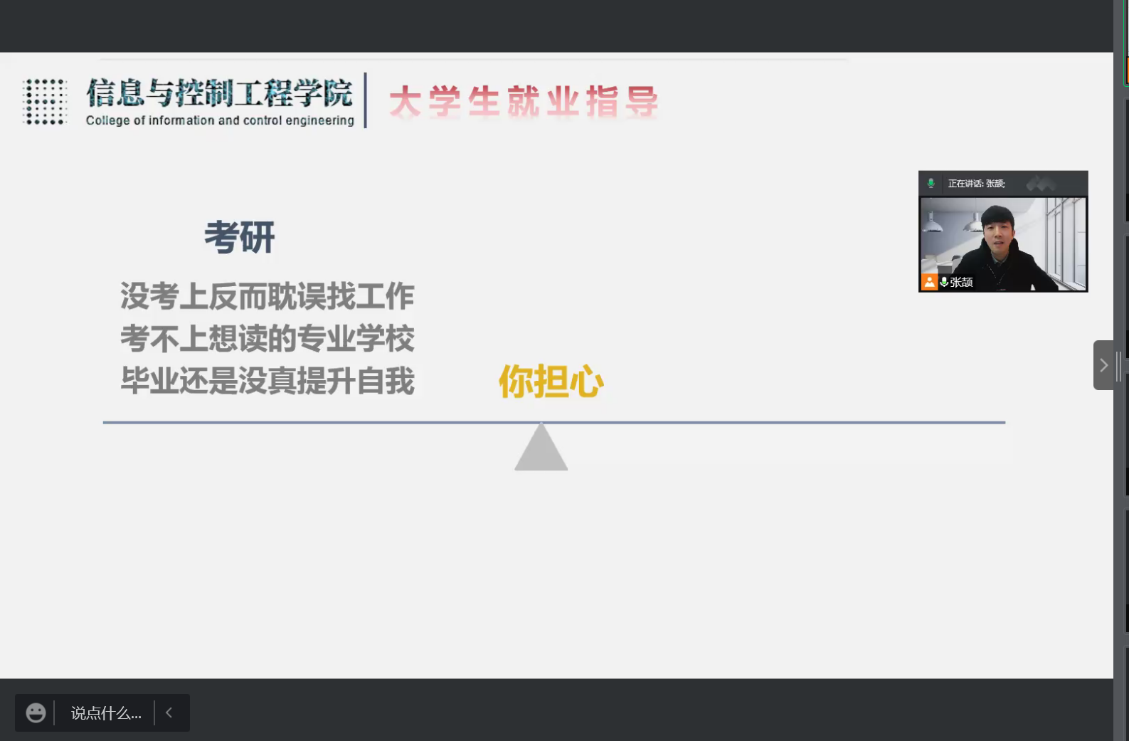 本次的考研就业座谈会,使同学们对于目前考研就业的发展现状有了新的认识,进一步清晰明确了自己的未来职业规划。