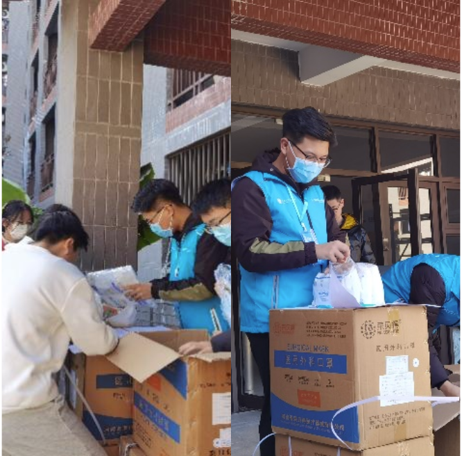 开始了井然有序的口罩发放工作。在发放口罩的过程中,各位志愿者以高度负责的态度发放口罩,确保将口罩发放到每个班级并叮嘱同学们一定要做好日常防护,佩戴好口罩,寝室内做到常消毒,勤通风。