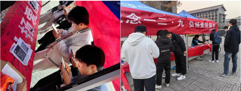 学生会、研究生会在紫阁书院餐厅广场联合举办了以“纪念一二·九运动,弘扬爱国精神”为主题的爱国系列活动。