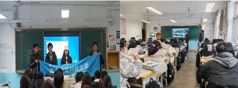 在本次宣讲中,我们小组以幻灯片的形式,从学校概况、校园风光、课余生活等方面向学弟学妹们全方位展示了西建大鄠邑校区的风采。
