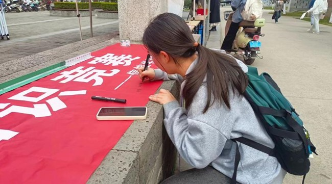 在答题结束后,同学们在本次活动的横幅上留下自己的名字,让同学们深切感受到本次活动的目的与意义所在,使本次活动更加具有参与感和仪式感。
