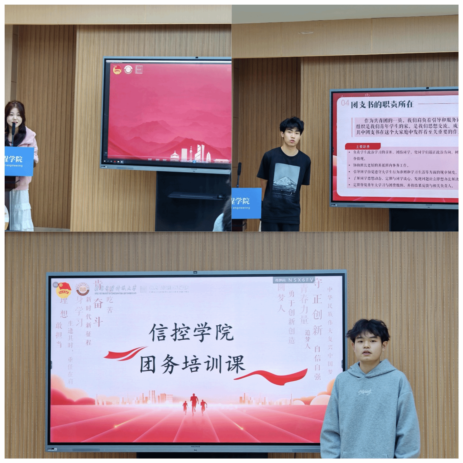 杨晓寒以“凝聚新时代青年在青春建功中展担当”为题进行了团课宣讲,他分享了在过去一年,学院广大团员青年以昂扬的姿态,在追光中前行,在拼搏奋斗中铺展青春华年,让青春在火热实践中绽放异彩。他对全体团干部提出了三点希望:一是在强化理论武装中引领凝聚青年。要通过深入地学习,不断提高向青年学生讲故事的能力,面向团员和青年开展理论宣讲,推动党的创新理论入脑入心入魂。二是在搭建育人平台中组织动员青年。要结合支部特点,围绕支部团员青年全面成长成才需求,努力搭建思想积极向上、内容丰富多彩、形式生动活泼的支部活动,发挥组织育人功能。三是在当好桥梁纽带中联系服务青年。要围绕维护青年权益、解决青年难题、促进青年发展等工作,聚焦广大青年的学业发展、生涯规划、心理困惑等需求,千方百计为团员青年办实事、解难题。