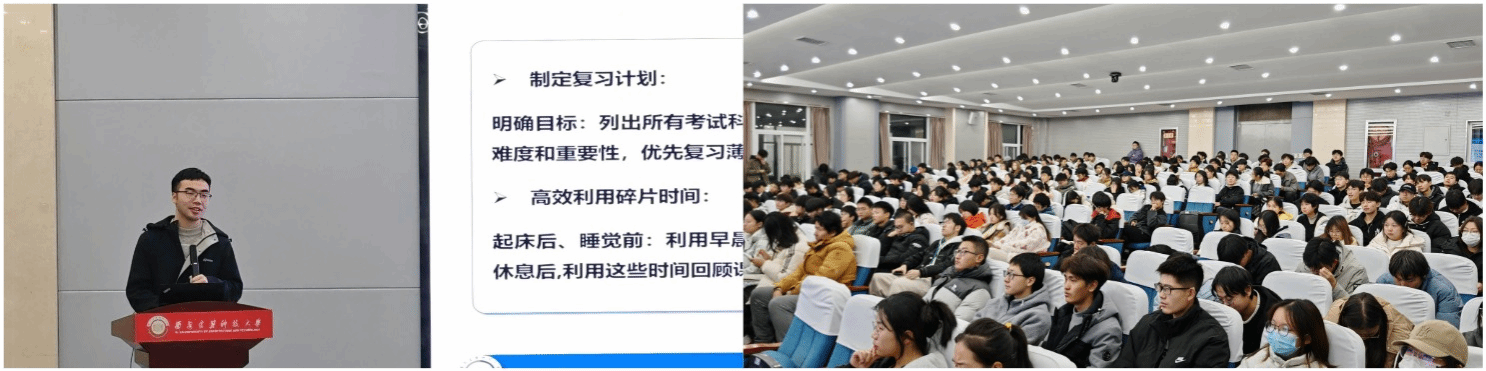 辅导员李朝从考前复习、诚信考试、安全教育三个方面展开讲解。临近期末考试提醒同学们要学会制定合理的复习方案,养成良好习惯,劳逸结合、科学用脑,合理安排复习时间。强调同学们牢记校规校纪、保持头脑清醒、坚守诚信考试的底线,用真实成绩检验自己的学习成果。同时提醒大家年末要注意防范各类诈骗并注意假期安全。