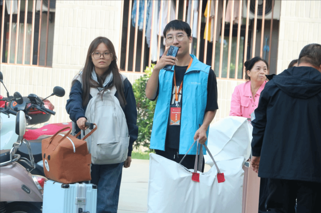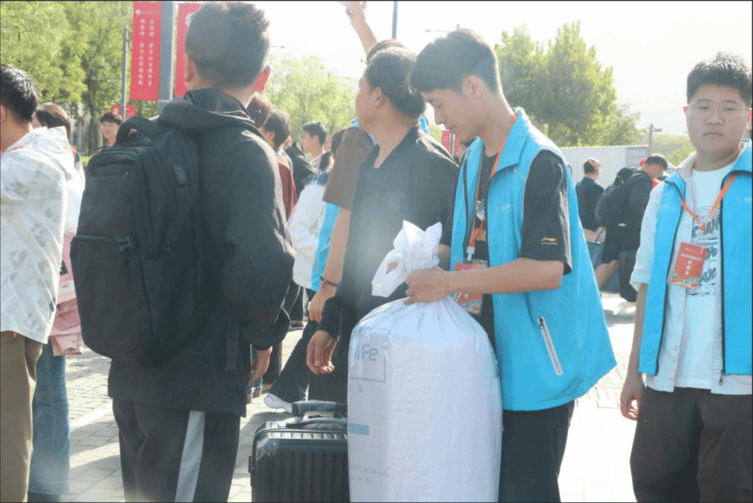 身着“信控蓝”的志愿者队伍,成为迎新现场一道极具辨识度的“青春风景线”。经过前期的系统培训,志愿者们已熟练掌握迎新全流程及校园服务信息。他们主动协助新生搬运行李、熟悉校园。面对拘谨的新生,志愿者分享适应经验与学习建议;遇到方向困惑的新生,精准指引。他们以责任担当和热忱服务,为新生搭建从“初入校园”到“融入集体”的暖心桥梁,用行动诠释信控学子良好的精神风貌。
