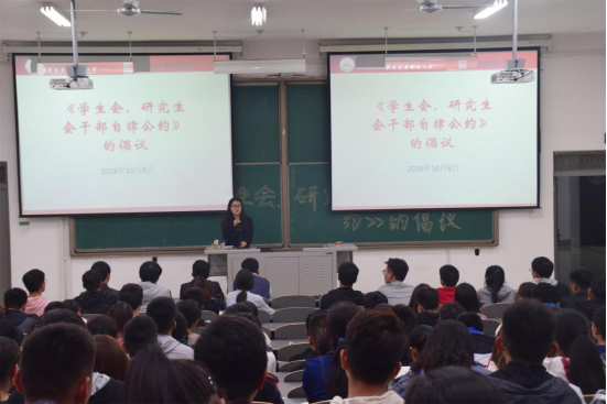 同时,郝老师结合《公约》的6条倡议,落脚于学院学风建设,提出我们的学生干部不仅要争做学生友,更要围绕学风建设当好排头兵,带动学院整体学风向好向上发展。