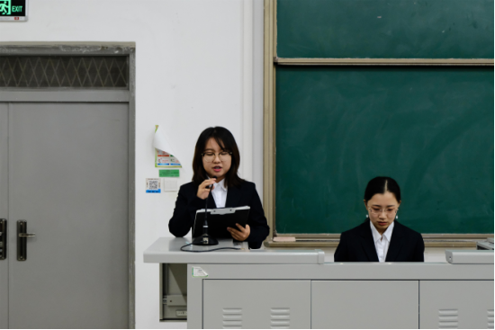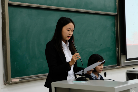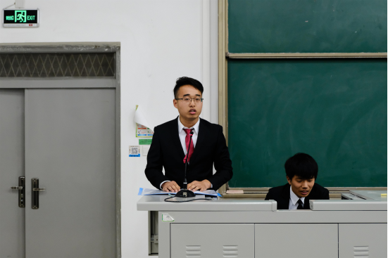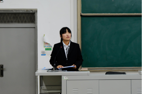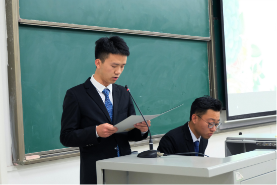大会在国歌声中起始,在主持人介绍完答辩要求与评分事项后正式进入答辩环节。首先进行的是先进班集体竞选答辩,参与竞选的班级代表人分别从班级的学习氛围、文化建设、文体活动、未来展望等方面将班级近学年来所取得成绩与荣誉进行展示。同时又对班级内的四六级通过率、个人竞赛获奖情况等进行介绍,分享了班内特有的学风建设活动。每位班级代表都信心满满,用稳健清晰的演说传达着自己班级的自信与实力。