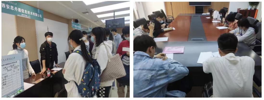 双选会期间,参会企业以个性海报和宣传页的形式向学生介绍单位情况、招聘政策、岗位需求、工资待遇等相关信息,毕业生携带简历,积极与单位人员交流,主动了解用人单位的相关情况。随后,部分用人单位结合需求,现场组织学生进行了笔试。