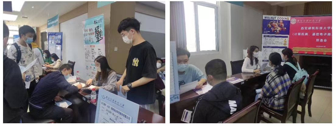 精准就业(计算机类、通信电子类、自动化类)双选会”在草堂校区信控楼504学术交流中心顺利举办。本次双选会邀请了航空工业西安翔迅科技、中国三安建设集团、陕西凌云电器、西安思丹德信息技术、西安中科闻歌科技有限公司等11家信息类学科(专业)相关单位,共提供岗位信息300余个,吸引到超过200余名毕业生参会。