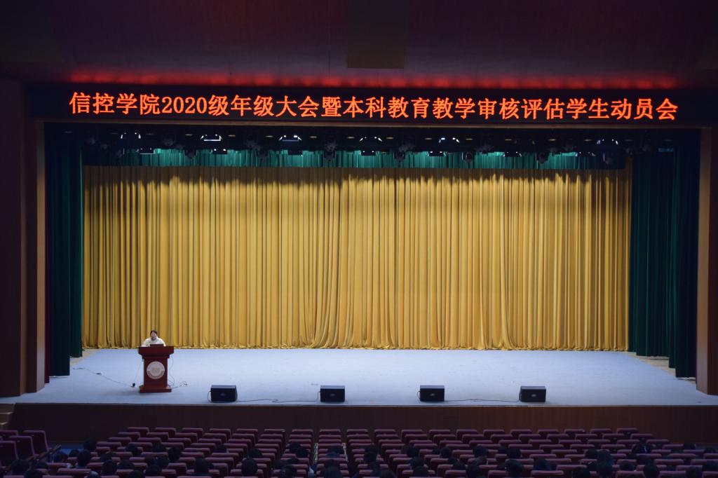 在紫阁大礼堂召开2020级年级大会暨本科教育教学审核评估学生动员会。本次年级大会特邀研途考研王墨钊,20级本科生辅导员赵莎及20级全体本科生参加,会议由20级辅导员王凯主持。