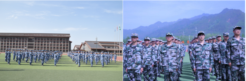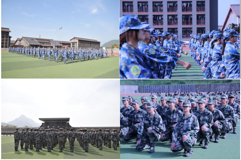 2021、2022级800余名学生身着迷彩服在紫阁植物医生运动中心开展军训工作,他们精神抖擞,队伍严整,斗志高昂。