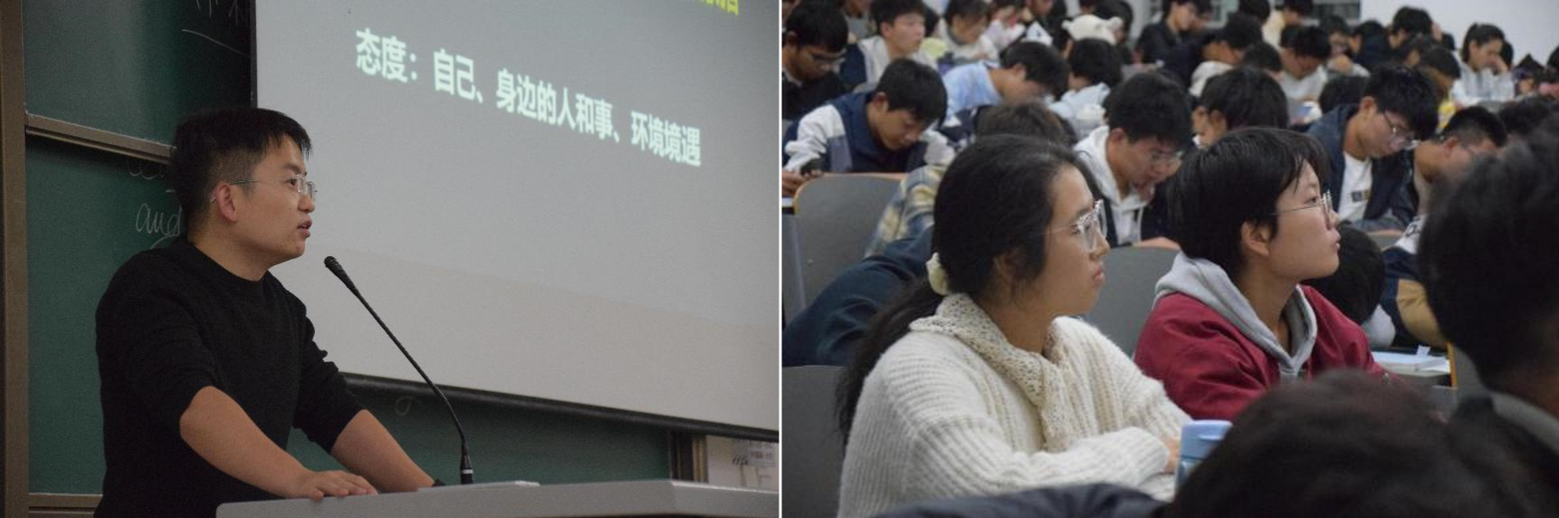 孙正清从人生态度切入,引导同学们发现自己的价值,希望同学们明白该怎么去学习,学什么。并立足学校的评价体系,希望同学们实现自我价值的追求。他强调到网络环境复杂混乱,希望同学们在网络上多做一些正能量的引导。他希望同学们树立远大目标,明确努力方向,细化大学规划,付出实际行动,在大学四年培养生活能力、学习习惯、成熟人格。