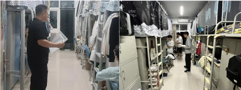 在为期三天的宿舍安全稳定专项检查中,各年级辅导员带领学生党员、学生干部对各宿舍进行检查,了解学生日常生活状况、学习情况等,重点排查大功率电器、违规物品、私拉乱接、宿舍及阳台卫生等问题。在检查过程中,辅导员老师于学生进行深入交流,了解学生日常生活氛围、宿舍矛盾等,着重了解了心理问题、学业困难学生的日常学习生活状态,帮助学生解决现实问题,做好台账梳理。同时,提醒学生安全无小事,严格遵守校纪校规,注意宿舍卫生,养成良好的生活习惯,严禁使用违规电器,杜绝安全隐患。希望大家时刻将人身和财产安全放在首位,提高安全意识,日常生活中注意个人卫生,注意自身健康。
