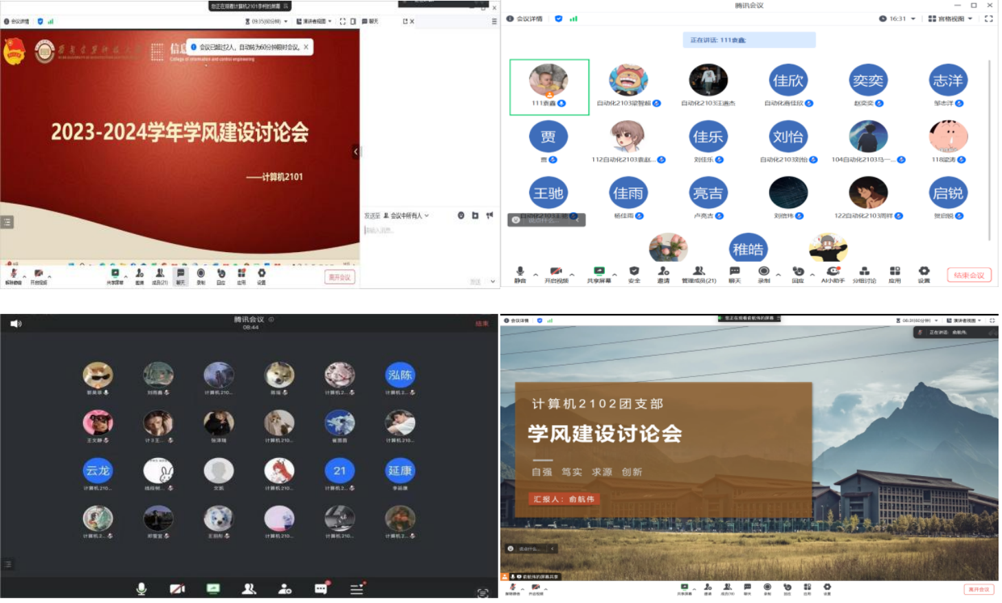 2021级本科生召开线上学风建设讨论会。2021级本科生辅导员杜瑶、杨朋于,各班班委及学生代表参加。