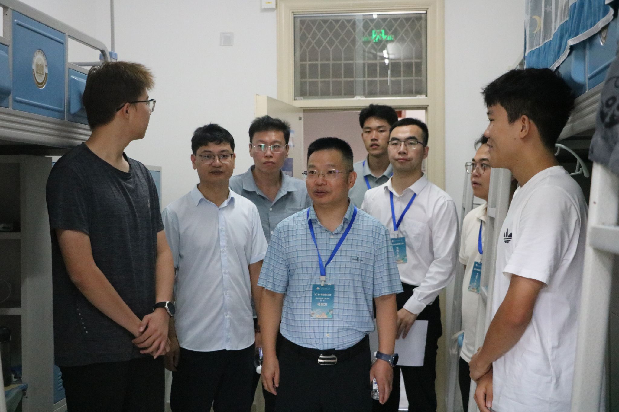 学院领导、新生班主任以及辅导员老师走进新生宿舍,与2024级本科生、家长亲切交谈,了解他们对学校的印象、生活的需求、大学生活规划等。鼓励他们尽快适应大学学习、发奋读书,积极参加学校各种活动,为美好的大学生活开好局、起好步。