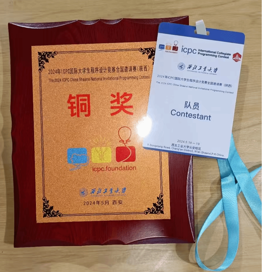 “争先创优”一等奖学金。获第47届ACM-ICPC国际大学生程序设计亚洲区域赛济南站与南京站铜奖、第13届蓝桥杯软件类程序设计大赛全国一等奖、中国高校计算机大赛2023团队程序设计天梯赛个人三等奖。