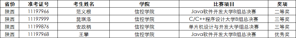 学子在第11届“蓝桥杯”大赛中再创佳绩,获国家级二等奖一项、三等奖两项、优秀奖一项。