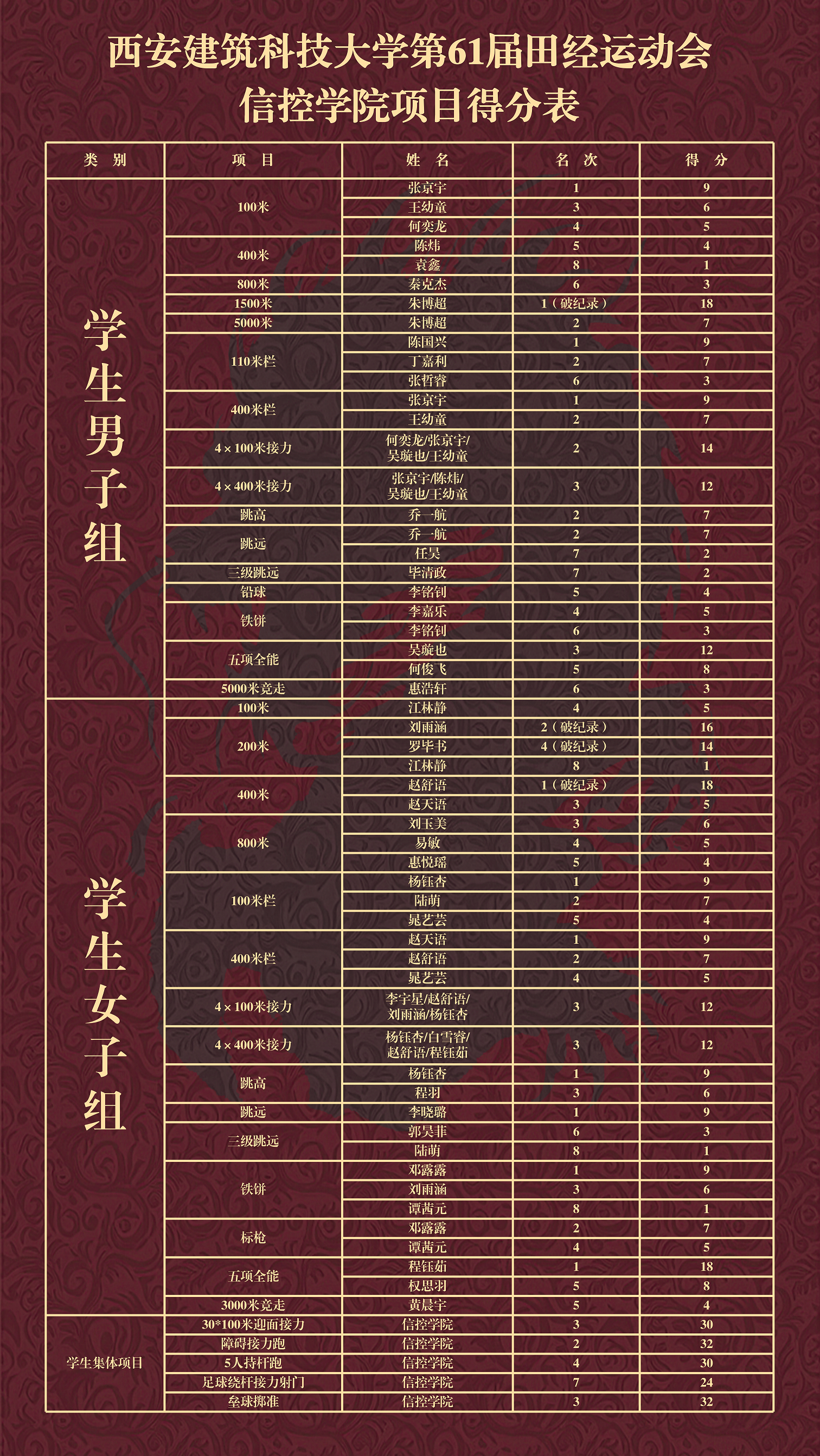 当颁奖曲在赛场渐次响起,当欢呼声慢慢沉淀为记忆,信控健儿们在田径场上留下的,不仅是奖牌的光芒,更是永不褪色的精神印记。田赛的每一次发力,是对极限的挑战;径赛的每一道残影,是对速度的追逐;接力的每一次交接,是对团结的诠释;教职工的每一个身影,是对拼搏的示范。这些闪耀的瞬间,终将汇聚成信控学子心中的火炬,在未来的学习与生活中持续燃烧 —— 让赛场上的坚韧融入书桌前的专注,让团队的默契化作协作时的同心,让 “红旗院” 精神成为面对挑战的底气。