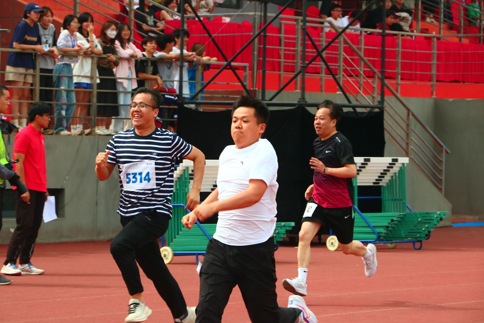 教职工走上赛场,尽显别样风采。短跑时步伐矫健,跳远时奋力一跃,趣味项目中与学生同竞技、共欢笑。他们脱下正装换上运动服,用赛场的拼搏姿态诠释 “言传身教”,既是课堂上的引路人,也是运动场上的榜样,为运动会注入温暖而坚定的力量。