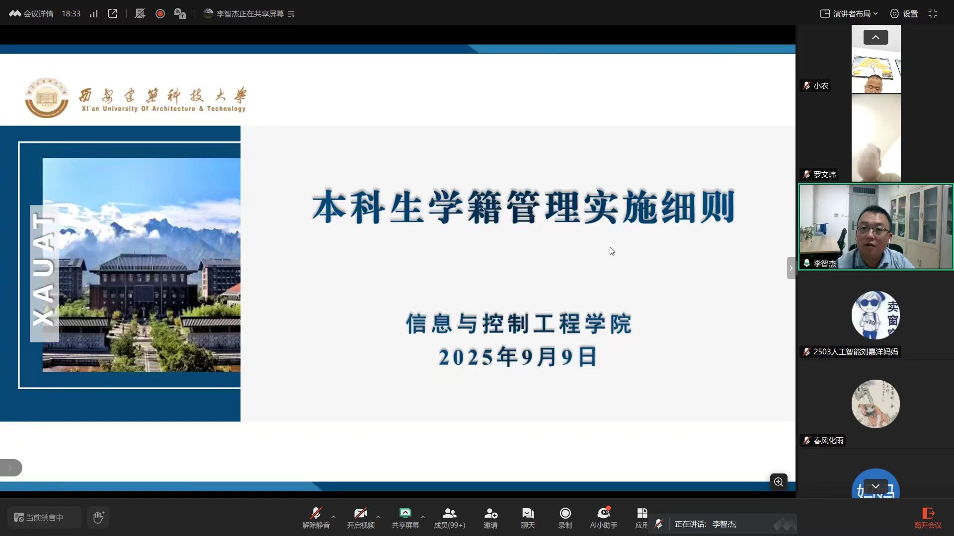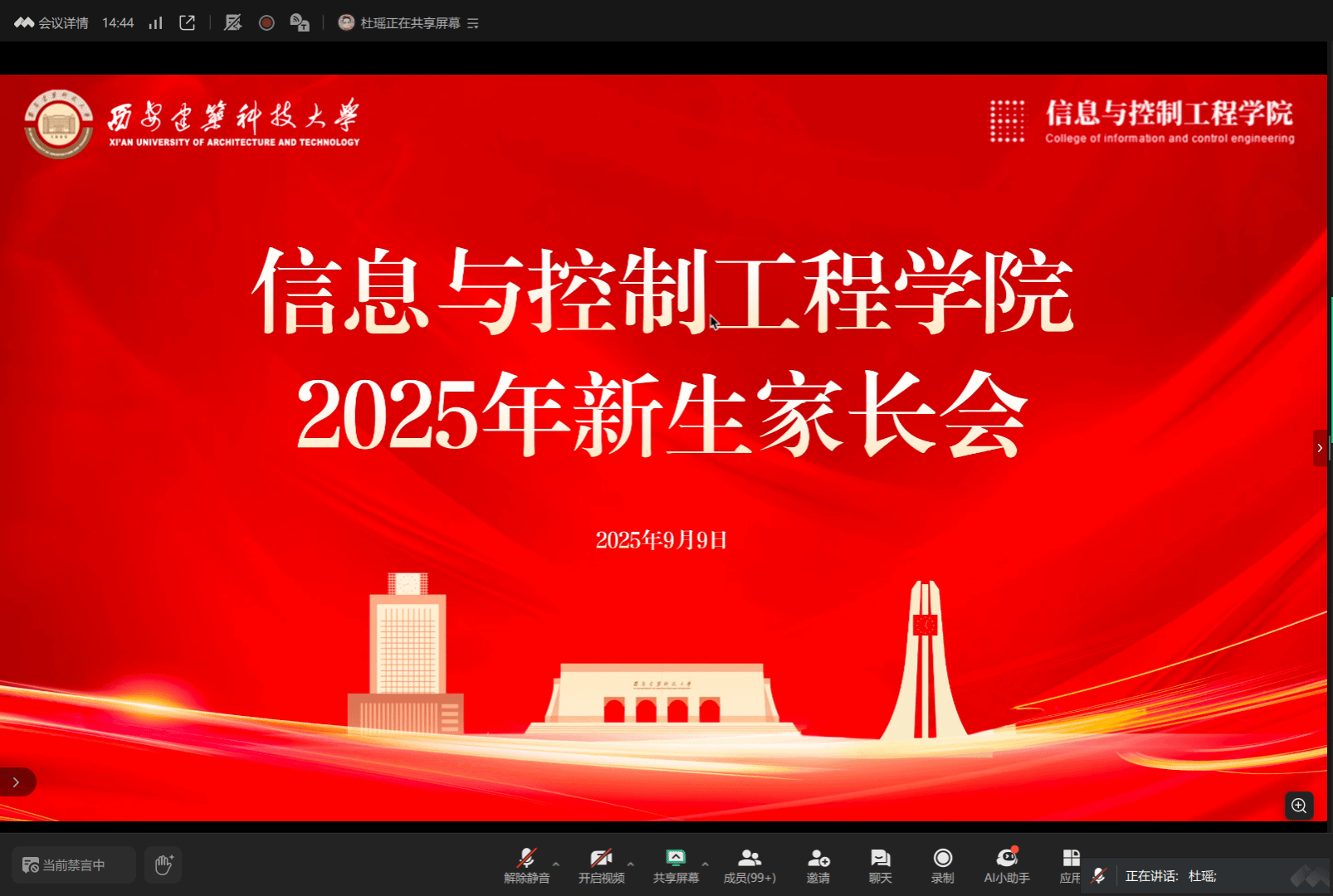 于9月9日线上召开2025级本科生新生家长会。学院党委副书记、副院长米泽龙,副院长李智杰,学校心理素质拓展与咨询中心王平老师出席会议,2025级本科生辅导员杜瑶主持,近500 名新生家长云端参会。