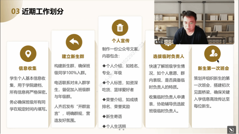 于8月21日17:00线上召开2025级班级助理职能培训。本次活动由2025级本科生辅导员杜瑶、张芙宁主持,全体新生班级助理参会。