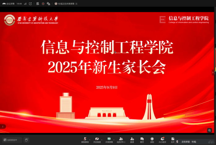 于9月9日线上召开2025级本科生新生家长会。学院党委副书记、副院长米泽龙,副院长李智杰,学校心理素质拓展与咨询中心王平老师出席会议,2025级本科生辅导员杜瑶主持,近500名新生家长云端参会。
