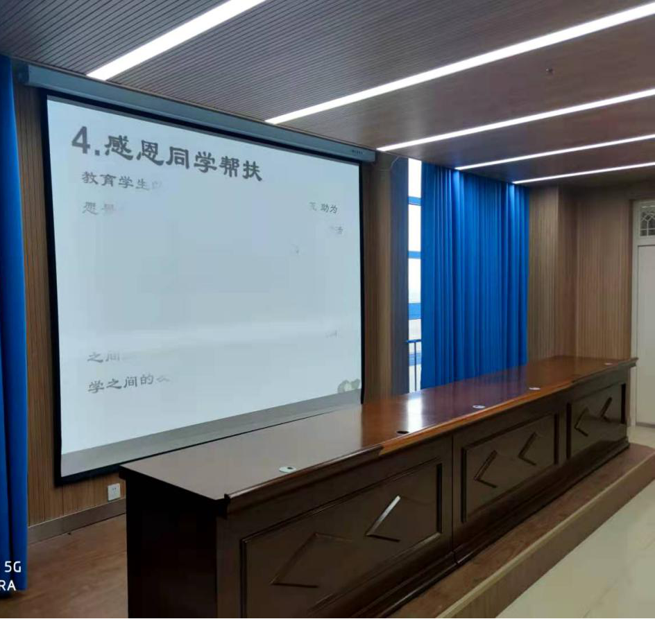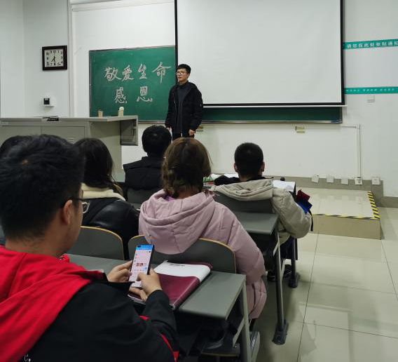 班会的第一个主题是感恩。班长从父母,老师,同学,学校四个方面为同学们仔细讲述了何谓感恩,何为感恩等深刻内容。现场气氛活跃却不失庄重,让大家感受到日常生活中的感动,懂得感恩,学会感恩。