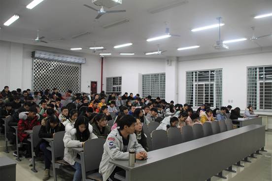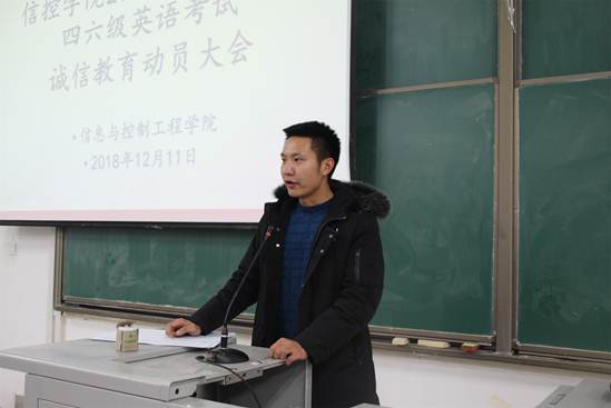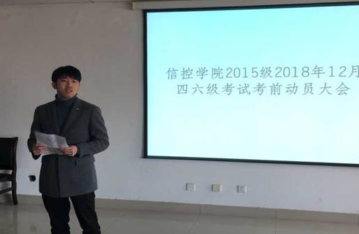 杨晓寒在2018级的动员会上列举了近年来各学院学生考试作弊的处罚后果,告诉大家要遵守考风考纪。随后播放了诚信教育宣传片《青蛙大学》,并通过影片再次强调了考试复习方法与考试纪律。之后,他向全体考生表达了自己的美好祝愿,希望大家在即将到来的四六级考试中取得令自己满意的成绩。