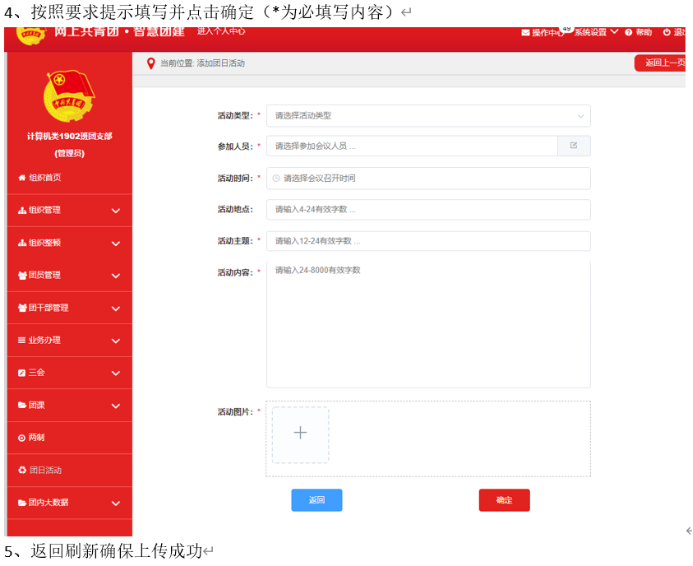 首先由组织部部长王隋德介绍团日活动,对相关内容进行详细说明。团日活动是学习红色思想,传播红色精神的活动,团支书必须将每一次团日活动的活动内容上传至智慧团建系统中。一学期最多开展五次团日活动,一学年最多开展十次团日活动。