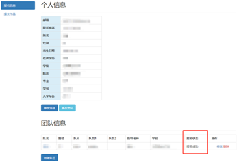 6、点击导航栏“中国P站”按钮,可看到队长个人信息及团队信息,“报名状态”栏显示“报名成功”,即为报名成功。