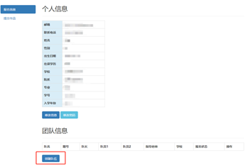 5、队长填写“团队信息”、添加队员和指导老师。添加队员和指导老师有两种方式: