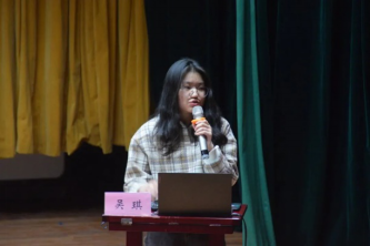 吴琪同学通过介绍团队项目,为大家具体的讲述了如何选题、如何组队、如何撰写参赛作品、如何保证参赛质量。黄怡兰同学现场为大家展示“挑战杯”路演的模式,分享路演的控场技巧,突出项目重点,展现项目优势。两位同学希望大家能结合兴趣,开拓创新,寻找志同道合的伙伴在“挑战杯”之路共同努力。
