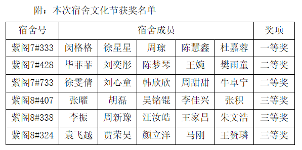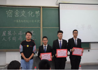最后,主持人宣读获奖名单,杨晓寒、张雨明与学生会主席白彤彤分别为获奖宿舍颁奖,六组优秀寝室集体合影留念,为本次活动画上圆满句号。