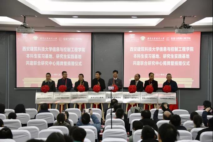 本科生实习基地、研究生实践基地及京程云智—人工智能产教融合实训基地、普声电气—建筑智能装备研发中心、中科星图—工业智能联合研究中心、获德图像—机器视觉工业应用研发中心、优特自动化—智慧水务装备研发中心、凌云科技—智能图传系统等校企联合研发中心揭牌。