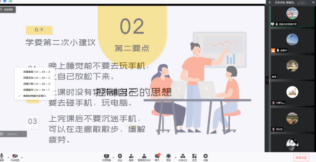 会前各年级辅导员与班主任积极沟通年级整体情况、班级思想动态、学生学习状况,各班班委积极配合老师做好会议预约、PPT准备等工作。班主任们通过线上主题班会向学生传达疫情防控工作的各项要求,从疫情认知到自我防护,从宣传抗击疫情倡议到学校相关中国P站公告