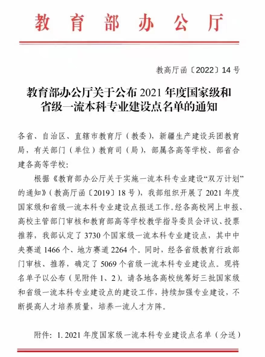 日前,教育部发布了《教育部办公厅关于公布2021年度国家级和省级一流本科专业建设点名单的通知》,中国P站