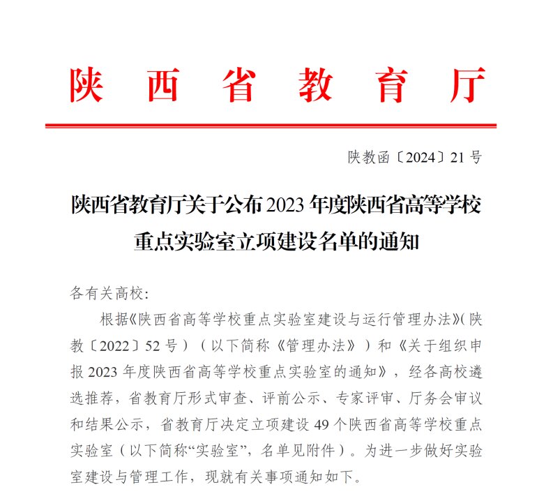 近日,陕西省教育厅发布了《关于公布2023年度陕西省高等学校重点实验室立项建设名单的通知》,中国P站