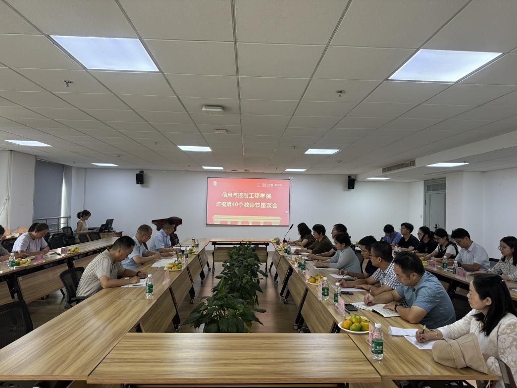 在工科楼713会议室召开庆祝第40个教师节座谈会。学院从教30年教师代表、校级优秀主讲教师代表、中青年教师代表,以及学院领导、机关管理人员等共计20余人参加了座谈会。会议由院长马宗方主持。