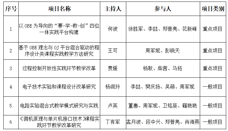 根据学院《关于开展2024年实践环节教学改革研究立项工作的通知》,经老师申报、专家评议、立项人修改、专家评审等环节,拟定设立项目6项,其中重点项目3项,一般项目3项。